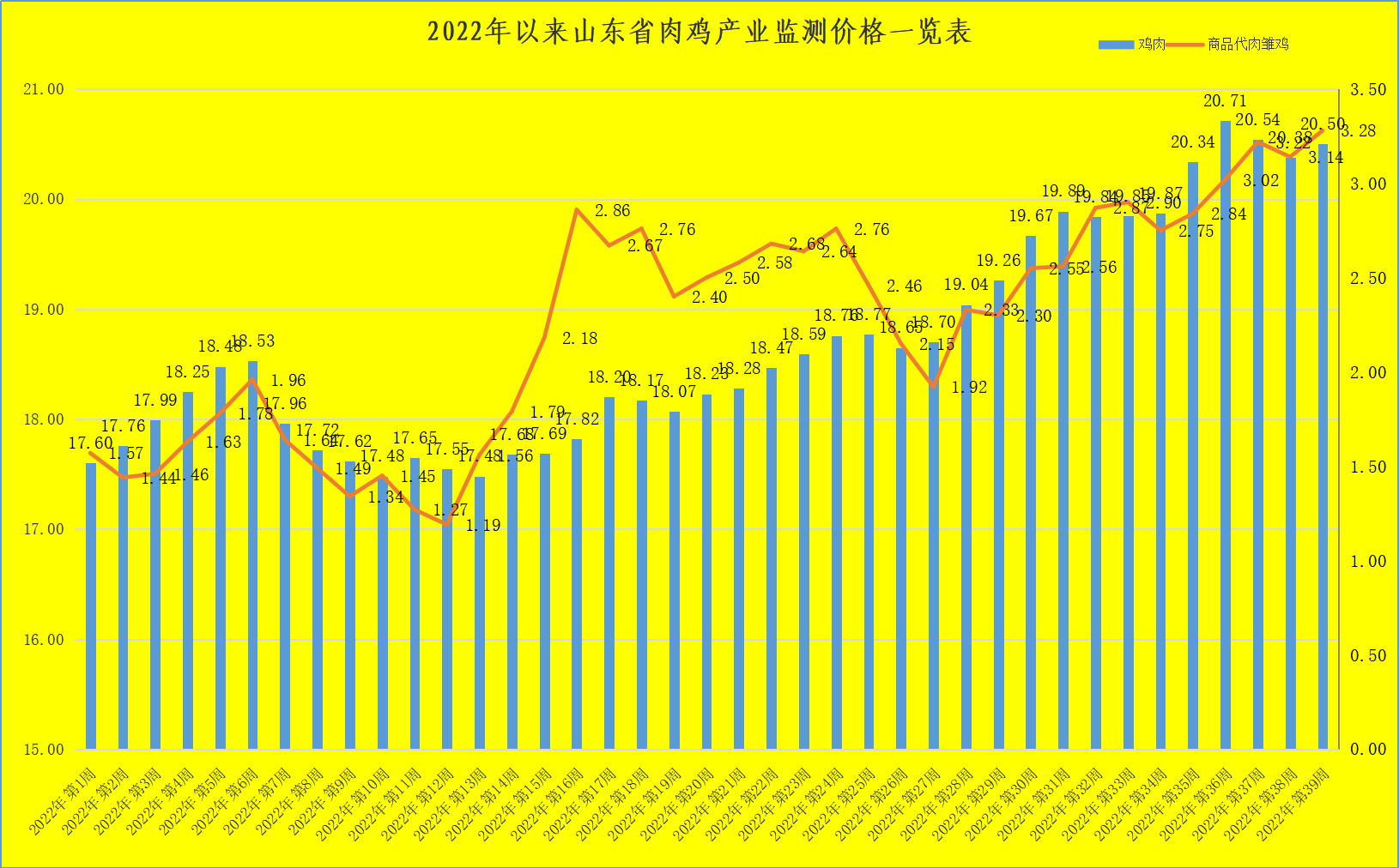 盈亏情况:2022年三季度,我省鸡肉消费趋好,据省畜牧总站监测,我省鸡肉平均销售价格在7、8、9月份逐步走高,尤其9月份鸡肉价格高位震荡,创近三年内新高。虽然受饲料价格高企的影响,肉鸡产业仍处于向好经营的态势。三季度毛鸡价格整体维持在9.2元/公斤,三季度鸡苗平均每只鸡盈利1.1元。后市来看,四季度是鸡肉的消费旺季,且今年蔬菜和猪肉价格较高,对鸡肉的替代需求也高,因此预计整体需求仍将维持旺季状态。叠加国外禽流感催化行情,鸡肉价格有望回暖向好。